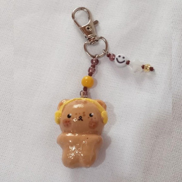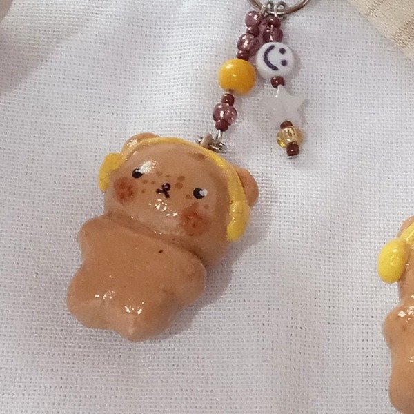 Llavero de porcelana fría de una pieza bañado en resina, con mosquetón de hierro y mostacillas ✨