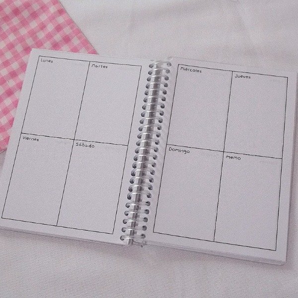 Planner semanal tamaño A6 anillado, semana vista, sin fechas marcadas